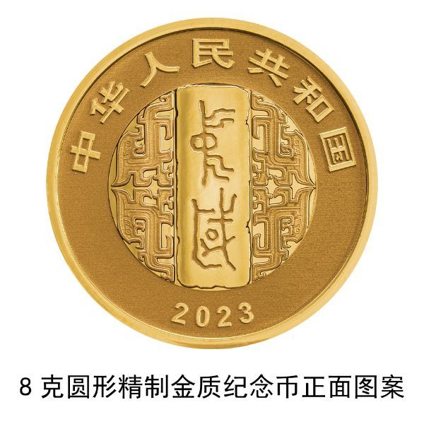 该套金银纪念币正面图案均为金文“中国”字样衬以青铜器装饰纹样,并刊国名、年号。