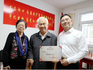 周老从峥嵘岁月中走来,在新中国的建设历程中永葆共产党员的初心,他知党恩、感党恩、报党恩,积极践行一名合格共产党员的誓言,从他身上折射出的是一种责任、一种精神、更是一种使命和担当,是一名老党员永远跟党走的坚如磐石的信心和决心。