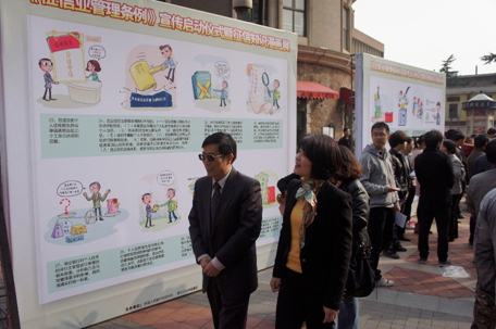 武汉分行采用市民喜闻乐见的漫画形式制作展板,图文并茂,通俗易懂、生动地展示了《条例》相关知识30问