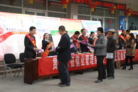 3月15日,西安分行联合分行营业管理部,组织30家金融机构,在西安市印钞广场上开展《条例》主题宣传活动,西安分行杜迎伟副行长、分行征信管理处以及西安分行营管部的领导参加了现场宣传活动。