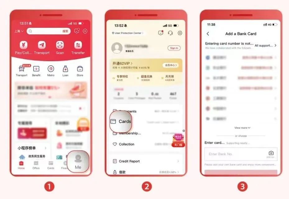 (一)在支付宝、微信等 APP 直接绑定外卡进行移动支付