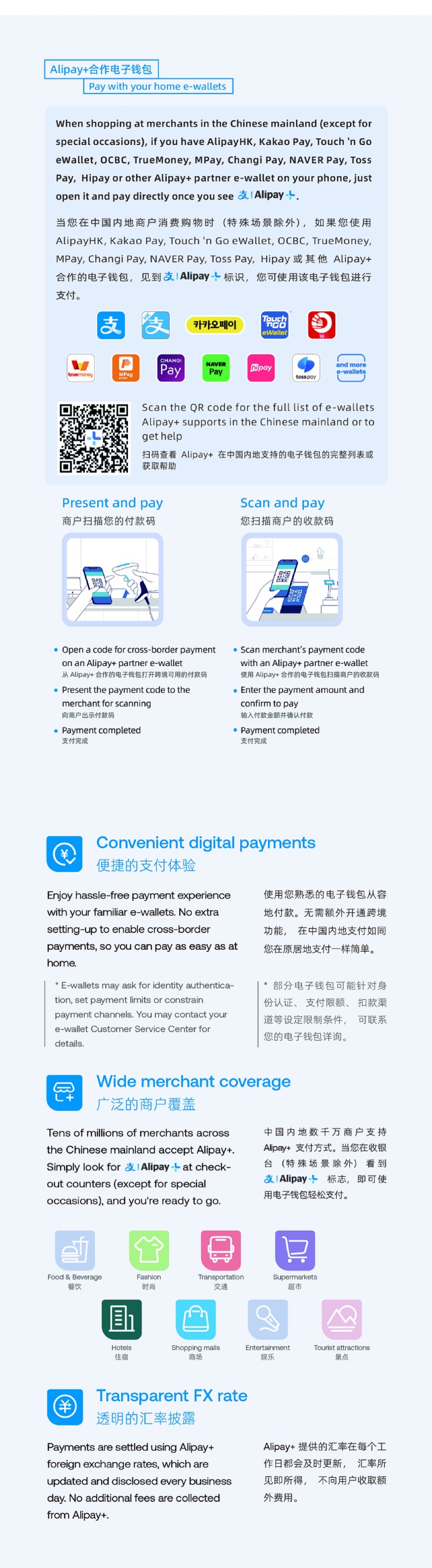如您为AlipayHK, Kakao Pay, Touch'n Go eWallet, OCBC, TrueMoney,MPay, Changi Pay, NAVER Pay, Toss Pay, HiPay或其他Alipay+合作的电子钱包用户,见到标识“